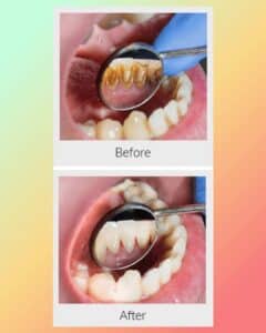 There is only one way to get rid of tartar. The solution is that you have to visit one of our professional dental hygienists. With proper care and regular dental check ups, you prevent it from growing in large amounts and causing oral health issues.